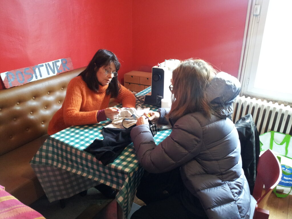Membre fondatrice de notre collectif, elle incarnait à elle seule chacun des 3R, – Réduire, Réutiliser, Recycler – et elle en rajoutait surtout 2 autres : “Rendre à la terre” pour Composter (avec Maguy) et surtout : Réparer. Fidèle des Repair Cafés, elle ne se contentait pas de Réparer des vêtements, elle les Rafraichissait, elle les Réadaptait, et elle leur Rajoutait des poches et même, un supplément d’âme.